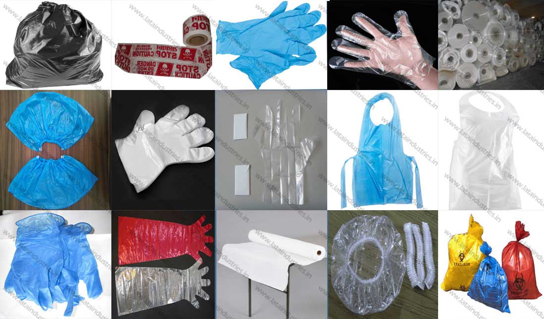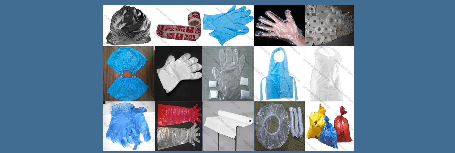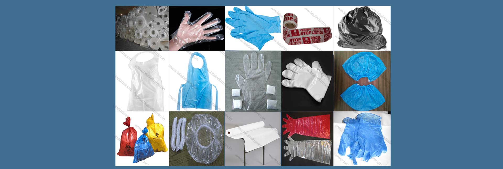 Lata Industries, is the new name for packaging material supplies which is based on proven experience and thorough knowledge of major industrial markets. Whether is a small or large job, We are committed in providing our customers with unparalleled customer service and quality products at a competitive price. We will make every effort to exceed your expectation and it’s our mission to provide quality plastic films and timely deliveries to tackle the most demanding projects. We do manufacture Polyethylene Disposable Hand Gloves which are available in wrist, elbow, and shoulder lengths. Our company is a leading manufacturer and exporter of PE series products and other disposable products in Ahmedabad Gujarat (India). Our main products include all kinds of PE & CPE Plastic Disposable Hand Gloves, Plastic Hand Gloves Pair Packing and Individual Packing, Plastic Veterinary Gloves, Plastic Disposable Apron, Plastic Shoe Cover Elastic, Plastic Shower Cap, Plastic Table Cloth, Plastic Barricade Tapes, Plastic Caution Tapes, Plastic Garbage Bag, Bio Medical Waste Collection Bag in various colors with printing, Vinyl Gloves Powder Free, Nitrile Gloves Powder Free, Food Grade Gloves, Latex Surgical Gloves, also various Plastic Treated Plastic Rolls, Plastic Films with different specifications, etc. all under one roof. Our products are mainly used for medical examination, laboratories, food processing, house cleaning, industrial market and other various fields.